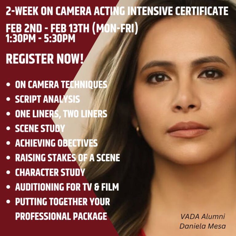 Ready for an exciting career in acting? Established in 1999, VADA has been teaching acting classes and has the highest actor/agency placement in the country. On average over 80% of VADA students achieve placement as a professional actor on an agent’s roster within 6 months of graduation. That means you could be going to auditions for paid professional jobs in a very short time.